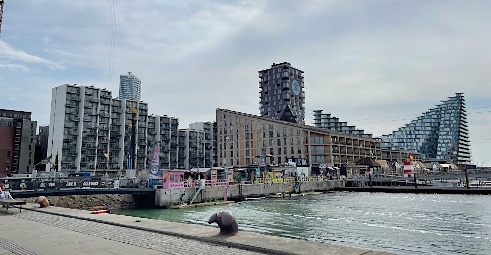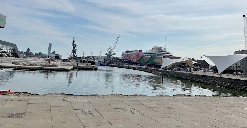 - weiter durch das moderne Hafengebiet Aarhus Ø
