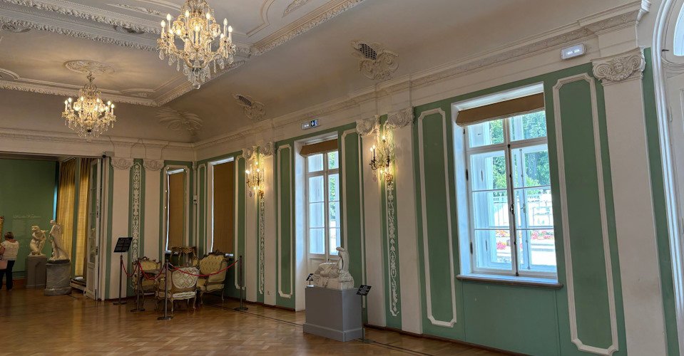 - ca. 1 h 30 min Besuch der ehemaligen Sommerresidenz Zar Peters I. und seiner Gemahlin Katharina mit ihrer Kunstgalerie, Spaziergang entlang der Parkanlage