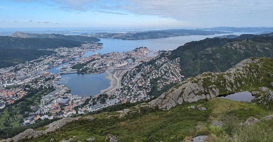 - kurze Fahrt mit der Seilbahn auf Bergens höchsten Berg (643 m)
