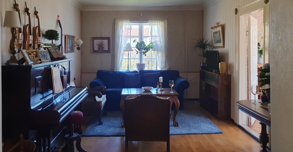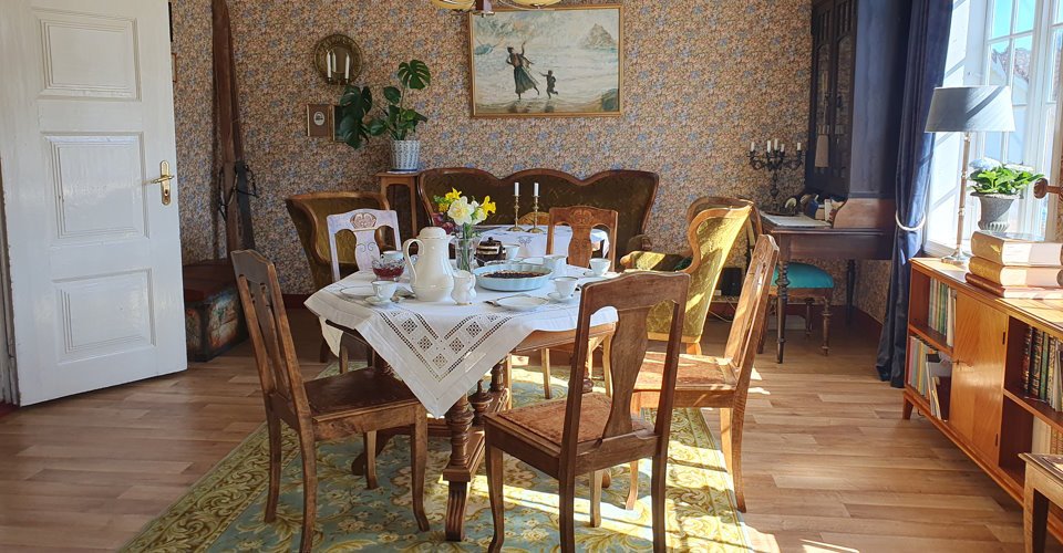 - Empfang durch Marit Skrede, der Bewohnerin des Hauses, welche mit ihrer Familie in diesem Haus aufgewachsen ist und auch heute noch dort lebt