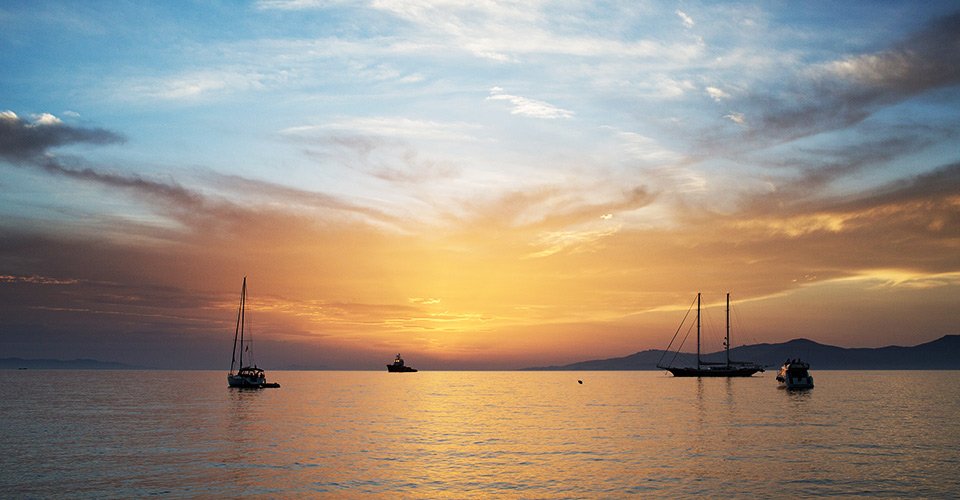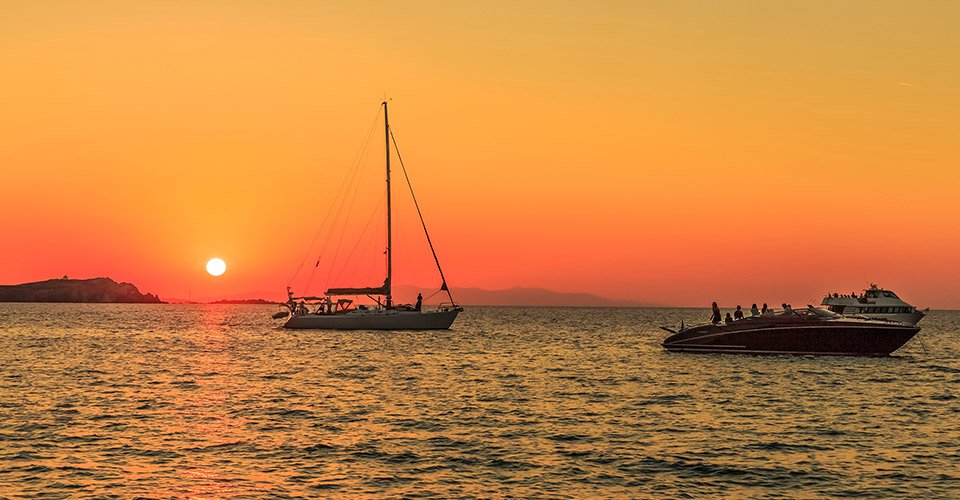- ca. 1 h 45 mit Segelfahrt auf einem klassischen Holzboot zwischen den Inseln Delos & Rhenia inklusive Stopp für das ein Abendessen an Bord