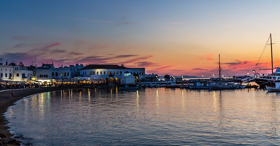- ca. 1 h Rückfahrt nach Mykonos vorbei an dem Stadtteil Klein-Venedig, der aufgrund seiner Ähnlichkeit zur berühmten Kanalstadt seinen Namen erhalten hat