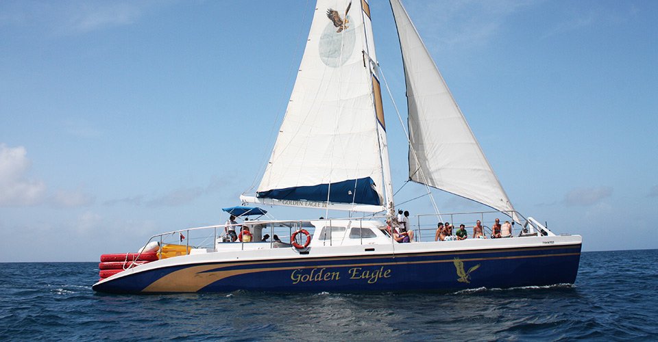- ca. 1 h 45 Fahrt mit dem Katamaran „Golden Eagle“ entlang der Westküste St. Maartens und dem Sonnenuntergang entgegen