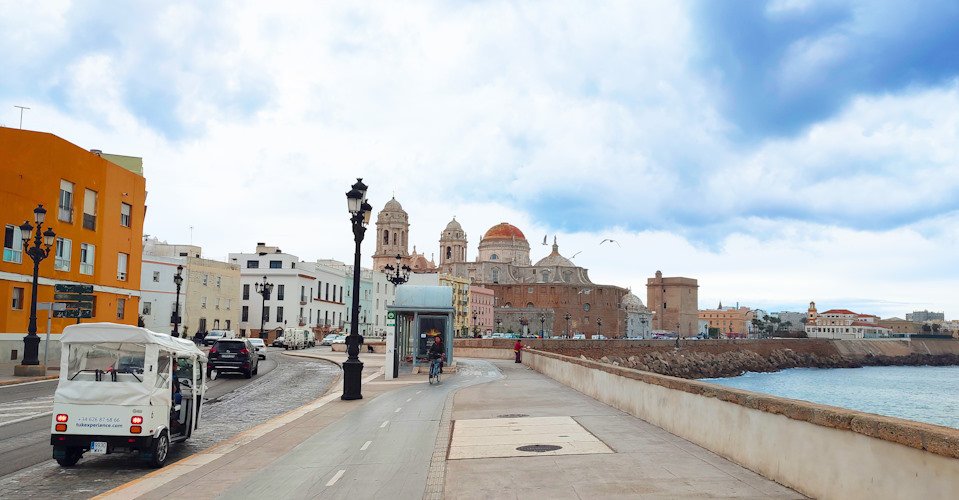 - vom Hafen aus per Tuk-Tuk ca. 1 h 30 durch Cádiz, vorbei an den Mauern von San Carlos, dem San Sebastián Schloss und der Kathedrale von Cádiz