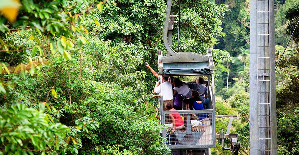 - ca. 15 min Fahrt mit den Freiluftgondeln durch den Regenwald und entlang 300 Jahre alter Bäumen bis zum Flussufer