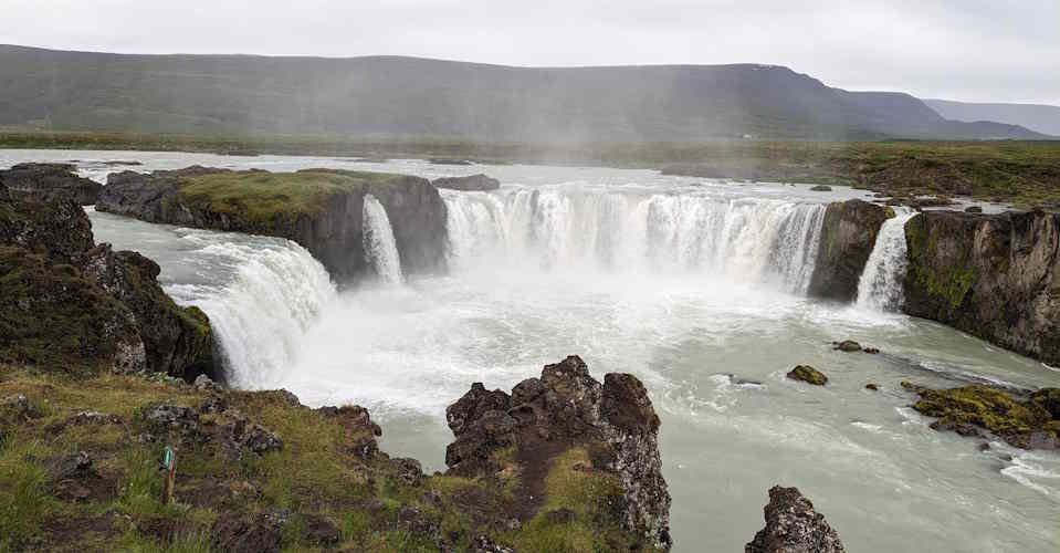 - ca. 1 h 30 Landschaftsfahrt zum Wasserfall der Götter, dem Goðafoss