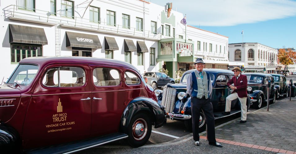 - Umstieg in die Oldtimer und ca. 1 h Fahrt durch das einzigartige Art-Déco-Viertel Napiers, das als eines der weltweit schönsten Beispiele für den Tropical Art Deco-Stil gilt