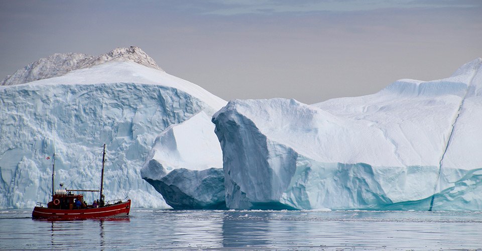 - ca. 1 h Motorbootfahrt vorbei an den bis zu 100 m hohen und 100 m breiten Eisbergen nach Ilulissat