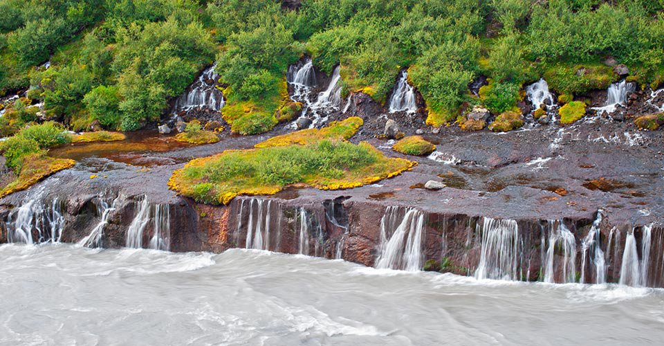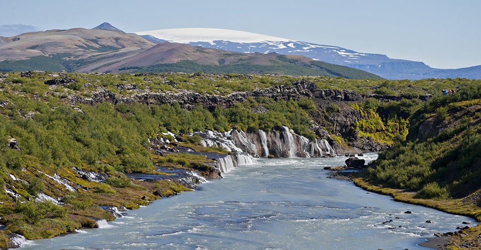 - ca. 45 min Fahrt zu den Hraunfossar und Barnafoss Wasserfällen und 30 min Aufenthalt