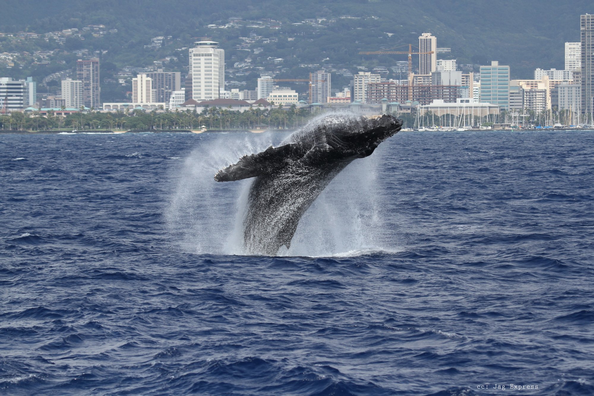 Buckelwale vor der Kulisse Waikikis