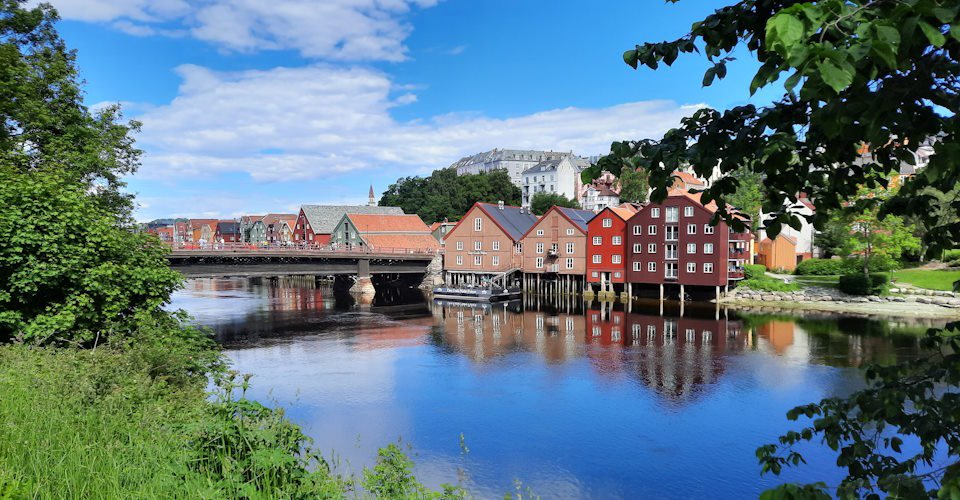 Eine Radtour durch Trondheim ist gespickt mit Highlights. Zuerst geht es über den Fluss Nidelva in die Speicherstadt mit ihren wunderschönen Holzhäusern. Über den Fischereihafen radeln Sie Richtung Trøndelag, wo sich der Aussichtspunkt Utsikten befindet. Ein Stück weiter oben empfängt Sie der Hausberg Grakallen mit einem tollen Ausblick. Die Abfahrt führt über das Trondheim Spektrum entlang des Flusses zur alten Stadtbrücke. Nach einem Stopp an der imposanten Festung Kristiansten geht es durch die Innenstadt, vorbei am Marktplatz mit seiner überlebensgroßen Statue des Wikingerkönigs Olav.
