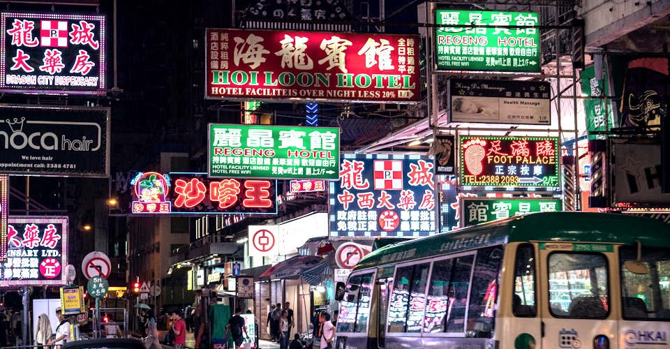 Im offenen Bus entlang Hongkongs Leuchtreklamen