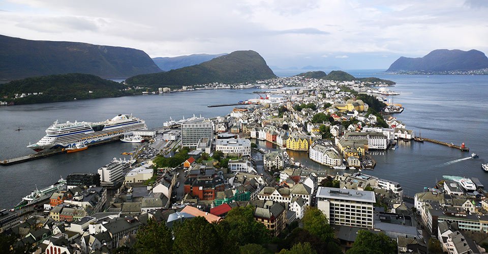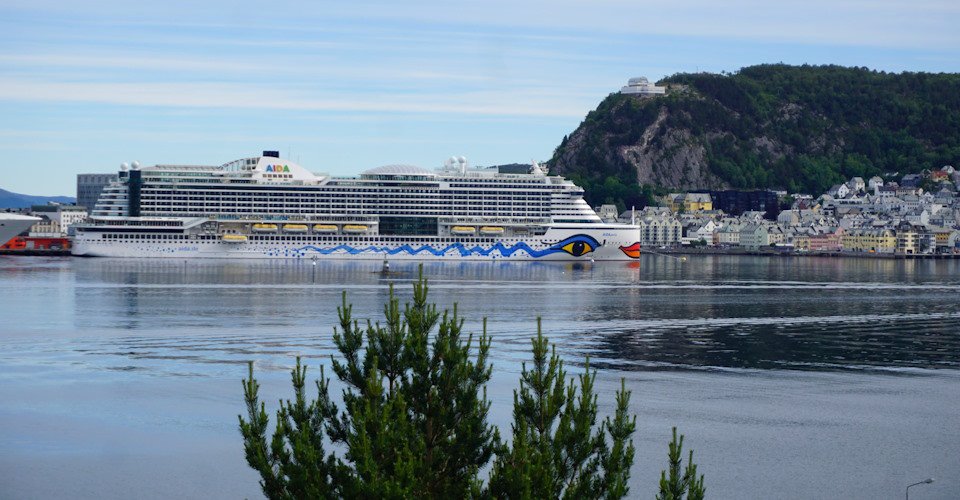 - tolle Ausblicke während der Tour auf die Sunnmøre-Alpen, auf den Platz des Slinningen-Feuers und das AIDA-Schiff
