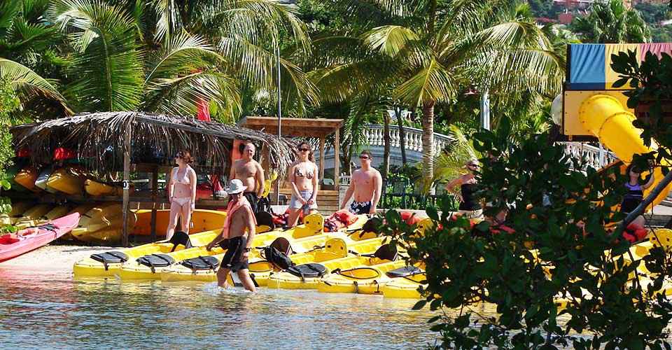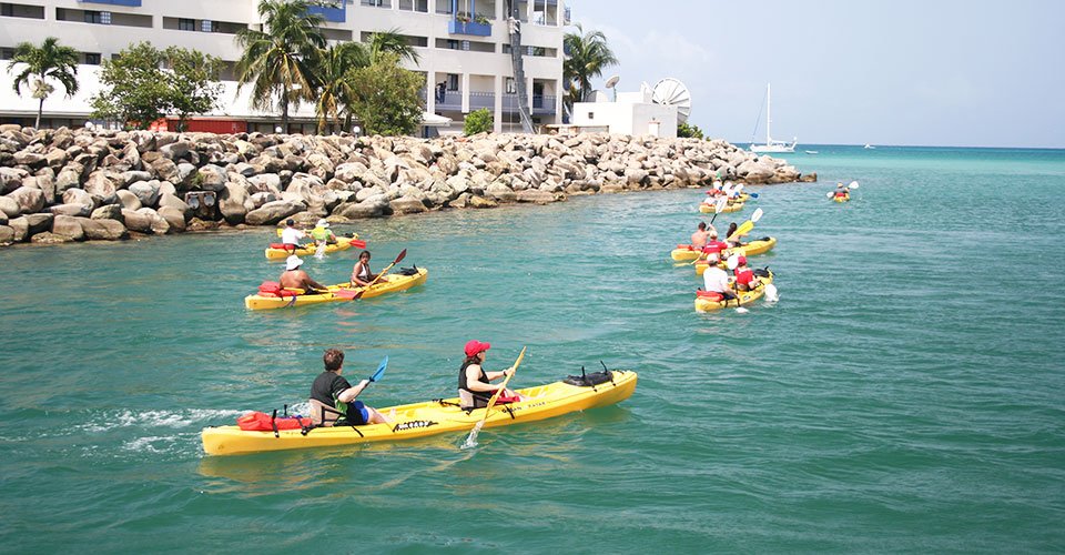 - ca. 1 h Kajaktour (1er- oder 2er-Kajaks) durch die Simpson-Bay-Lagune