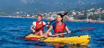 - ca. 10 min Busfahrt zum Strand; nach kurzer Einweisung und Ausrüstung mit Rettungswesten Einstieg in die Kajaks (2er)