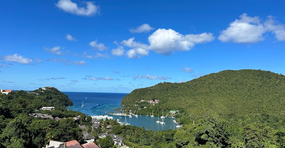 - Fotostopp an der Marigot Bay mit Blick über die Bucht und Möglichkeit zum Souvenirkauf
