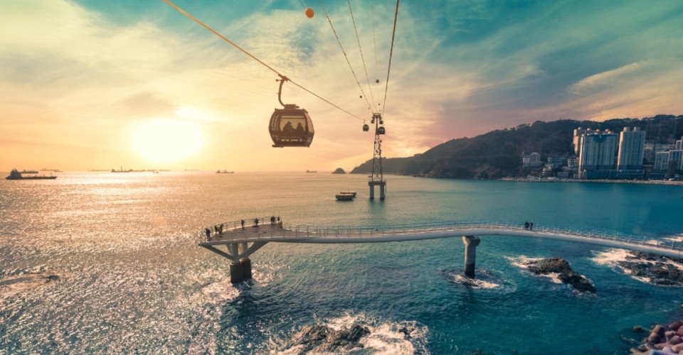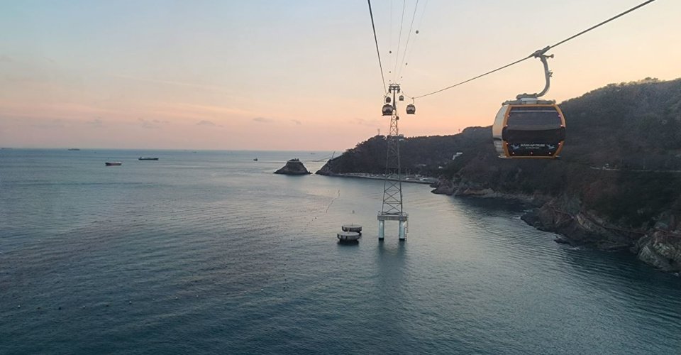 - ca. 30 min Busfahrt vom Hafen zur Songdo Marine Cable Car, einer 1,62 Kilometer langen Seilbahn die direkt über das Meer verläuft