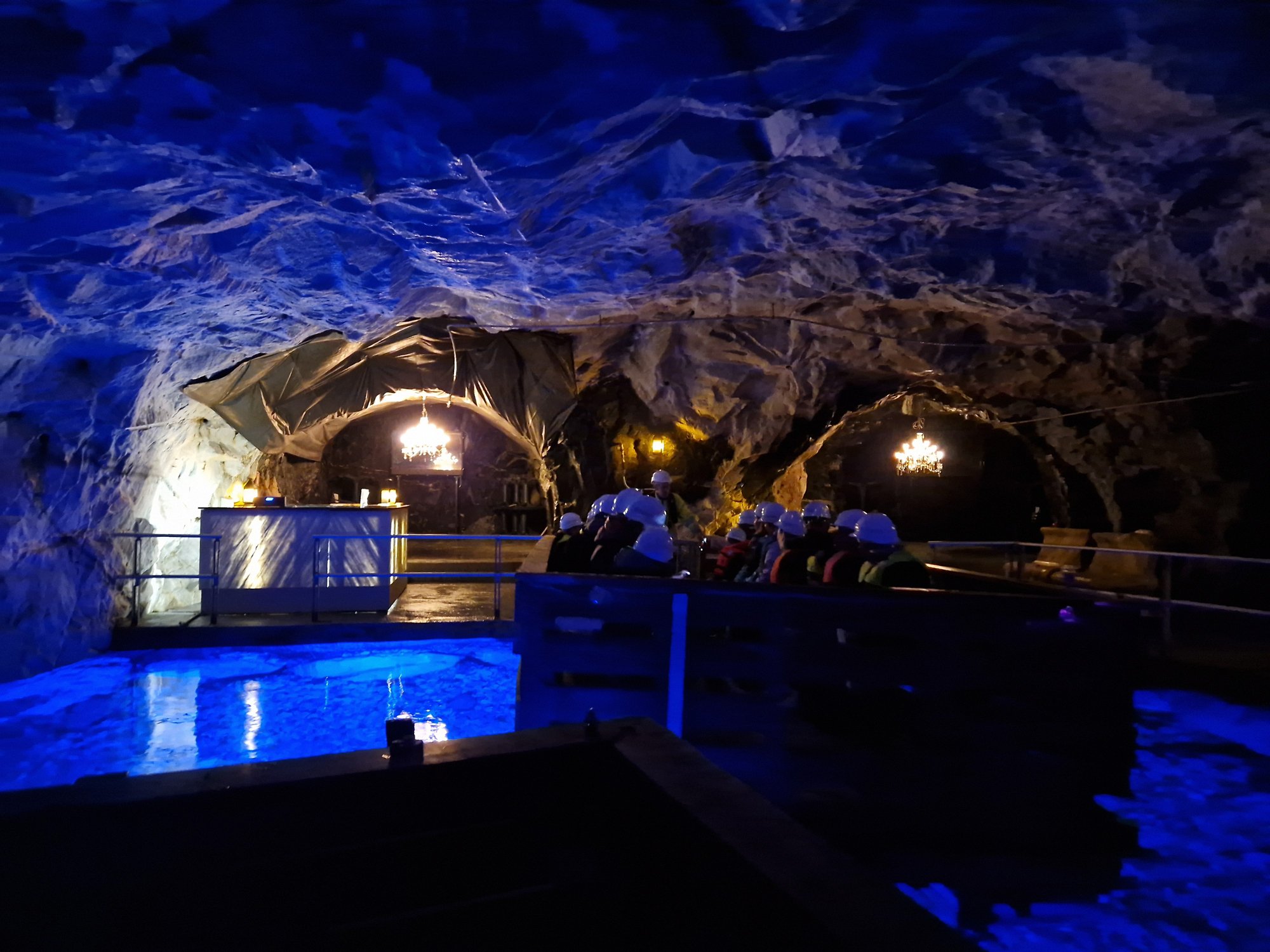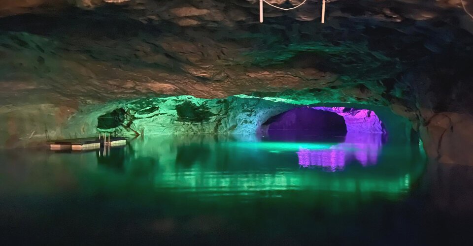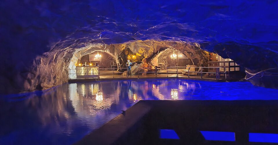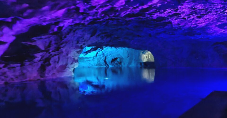 - ca. 1 h 15 Aufenthalt, um den großen Höhlensaal und die Kronleuchter zu bestaunen, bei leiser Musik eine Floßfahrt auf dem unterirdischen See zu unternehmen, sowie das frische Quellwasser aus dem Berg zu probieren