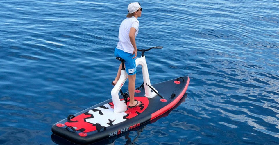 Mit dem Red Shark Bike auf dem Wasser