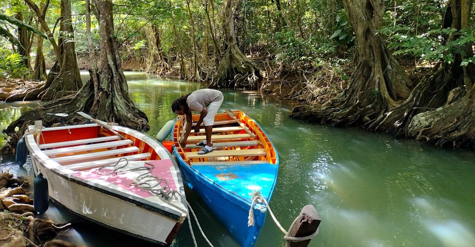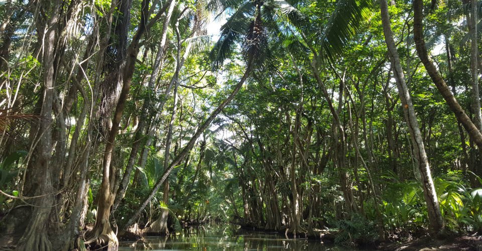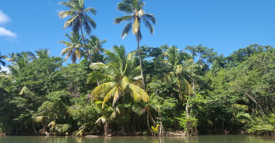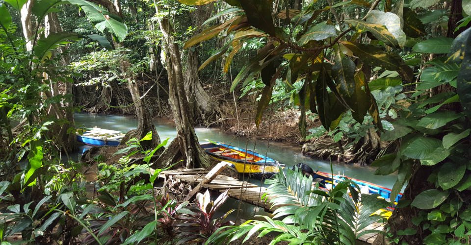 - ca. 1 h 30 den Fluss entlang durch Mangroven und Wald
