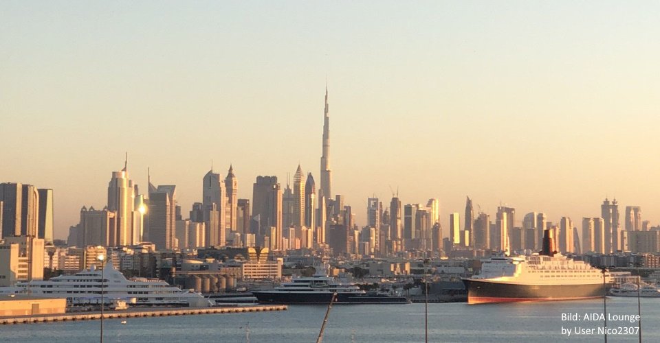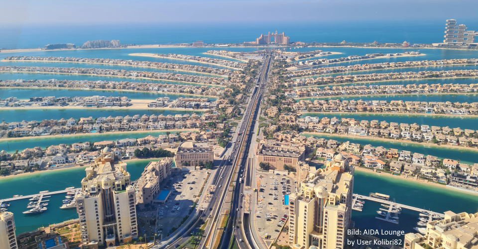 - vorbei an der Dubai Marina, vielen luxuriösen Villen u. a. des Sheikhs und der Bluewaters Island sowie Palm Marina