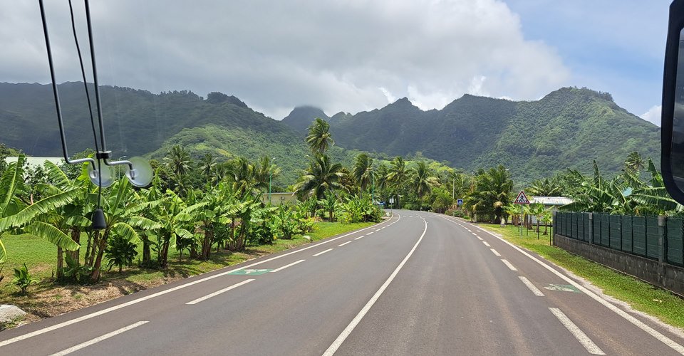 - ca. 3 h 30 Panoramafahrt mit dem Bus über die Insel Moorea, u.a. vorbei an beiden großen Buchten Cook´s Bay und Opunohu Bay