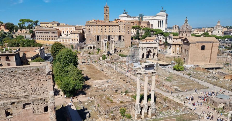 - anschließend kurze Panoramafahrt vorbei an Caracalla-Thermen, Kolosseum (außen), Konstantinsbogen, durch den archäologischen Teil mit Circus Maximus, Forum Romanum;
