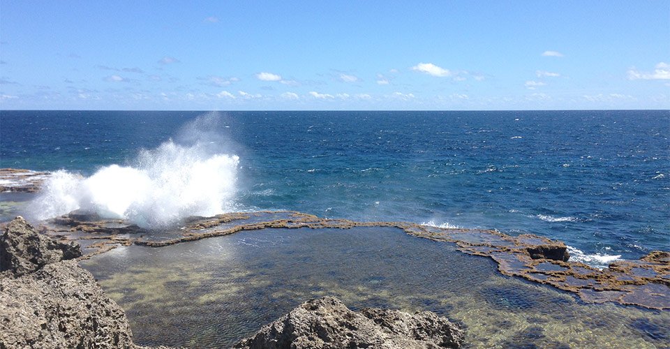 - Fotostopp am bekannten Naturschauspiel der Blowholes, in denen die Brandung das Wasser gegen die Felsen drückt, so dass das Wasser durch Röhren im Gestein wie ein Geysir erscheint