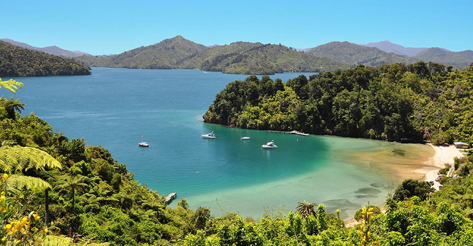 - ca. 1 h 30 Rundwanderung auf dem Queen Charlotte Track, durch Küstenwald und vorbei an malerischen Buchten mit atemberaubendem Ausblick auf die Landschaft und Buchten der Meerenge