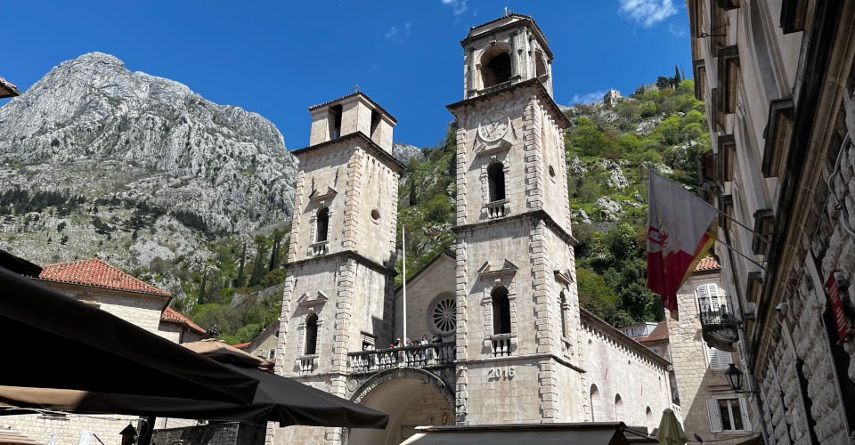 - kurzer Stadtspaziergang durch die engen Gassen von Kotor vorbei an dem Uhrenturm im Renaissance-Stil, Palästen aus dem 15. bis 18. Jahrhundert und an der 1166 erbauten romanische Sankt-Tryphon-Kathedrale (Sveti Trifun)