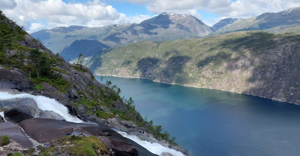 Wanderung zum Langfoss-Wasserfall