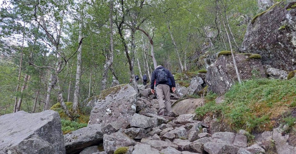 - anschließend 3 h anspruchsvolle Wanderung über unebenes und steiles Terrain zum Langfoss-Wasserfall, einem der schönsten Wasserfälle der Welt, dem magische energetisierende Kräfte nachgesagt werden