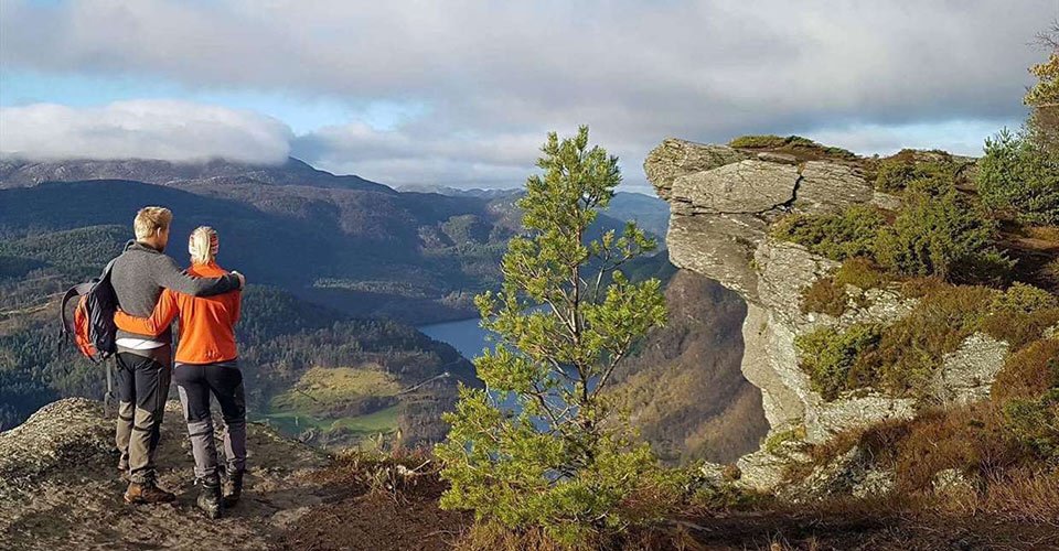 - ca. 3 h Wanderung zur Felsformation Himakånå (größtenteils über Schotter- und Waldwege) und fantastische Aussicht auf den Lysevatnet-See, den Fjord und die umliegenden Wälder und zurück zum Ausgangpunkt
