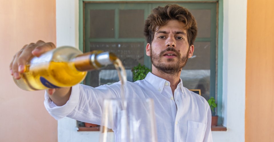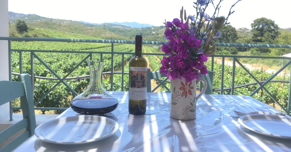 Griechischer Wein in idyllischer Atmosphäre und paradiesische Natur