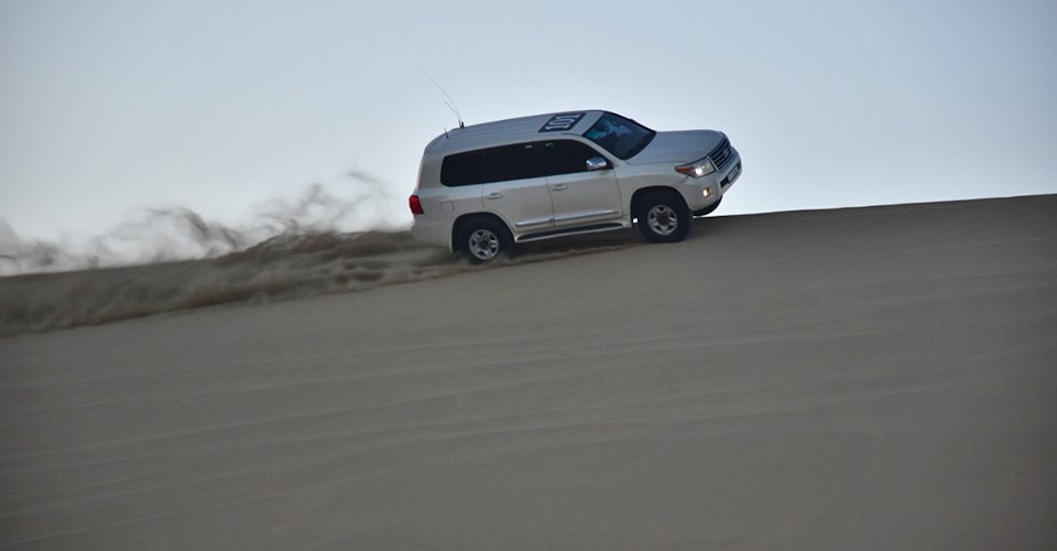 - währenddessen Fotostopps am Arabischen Golf und am Meeresbecken bei Khor Al Adaid, welches als größter landschaftlicher Schatz Katars gilt