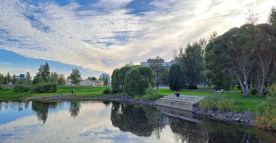 - ca. 1 h 30 Stadtrundfahrt durch die Städte Tornio und Haparanda mit Fotostopps an verschiedenen Sehenswürdigkeiten, u.a. den Kichen